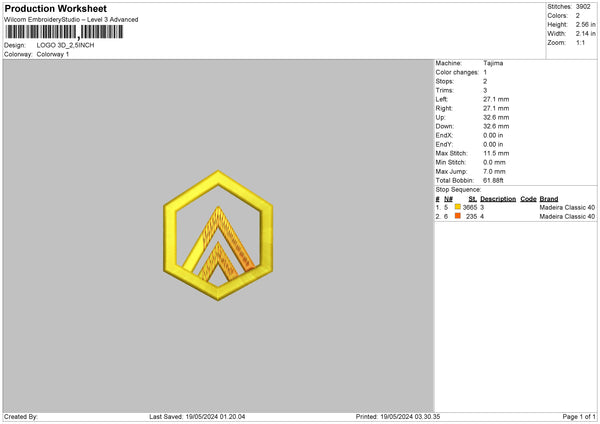 Logo1905 Embroidery File 6 sizes