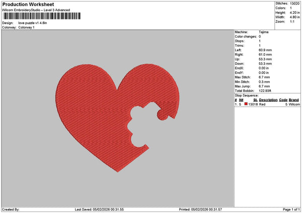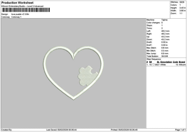 Love Puzzle V1 V2 Embroidery File 6 sizes