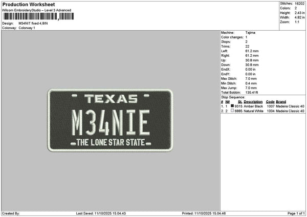 M34text Embroidery File 6 sizes