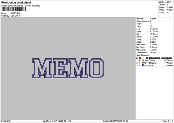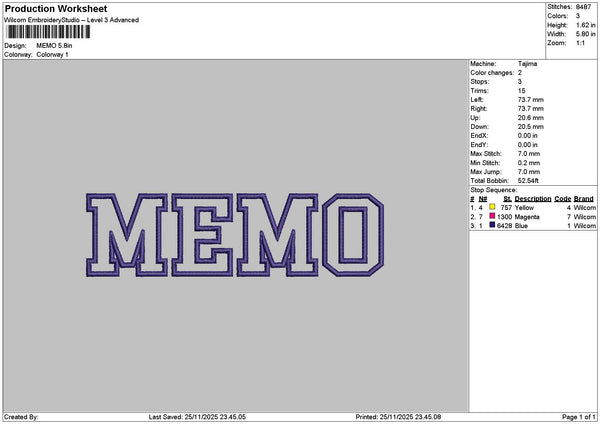 Memotext Embroidery File 6 sizes