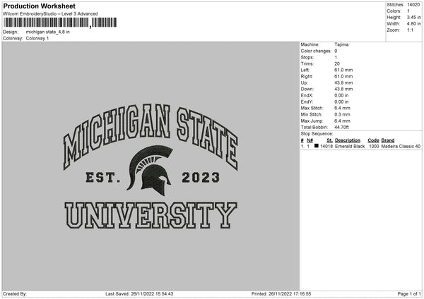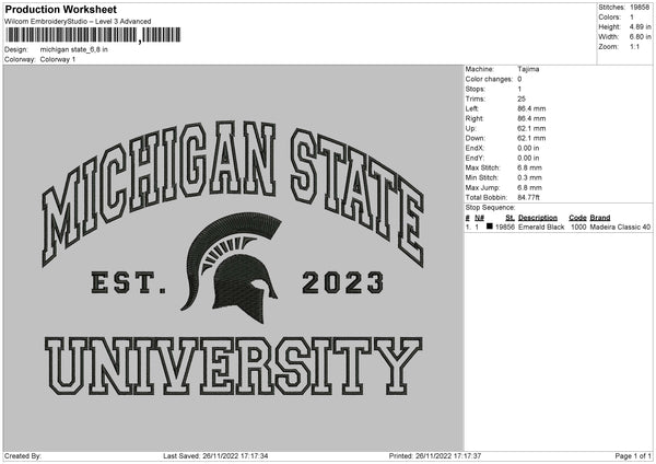 Michigan State Embroidery File 6 sizes