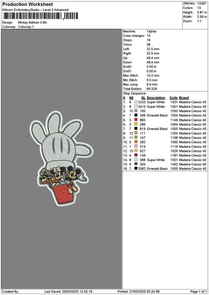 Mickey Balloon Patch Embroidery File 6 sizes
