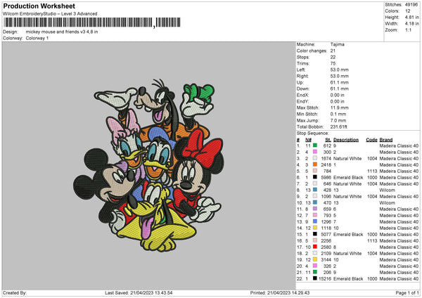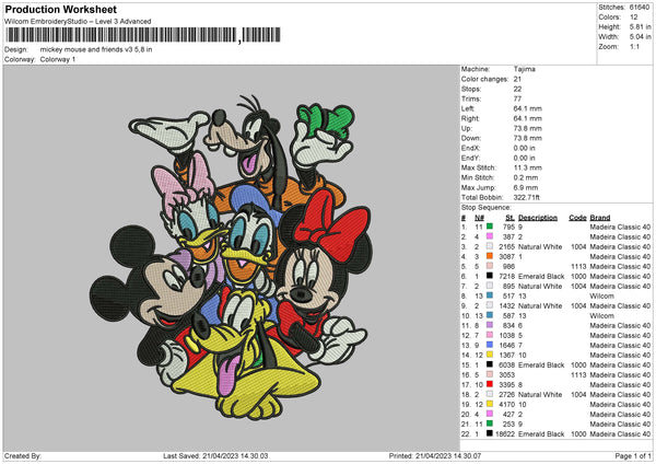 Mickey Friends V3 Embroidery File 6 sizes