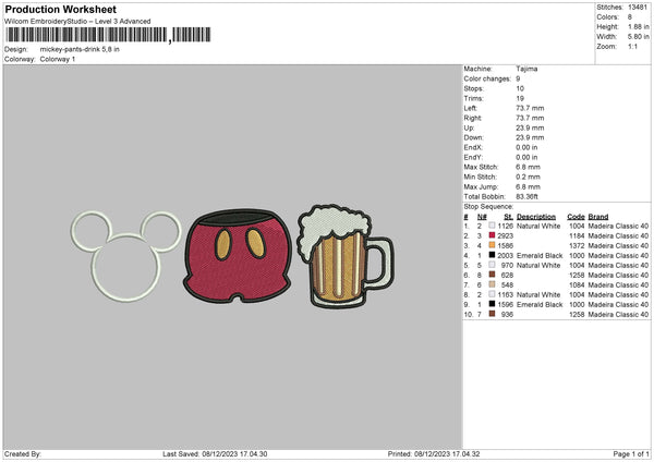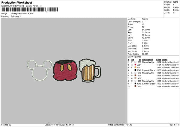 Mickey Pants Embroidery File 6 sizes