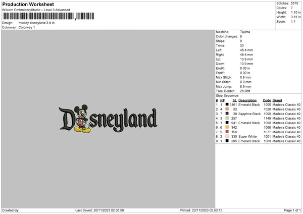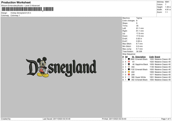Mickeyland 23 Embroidery File 6 sizes