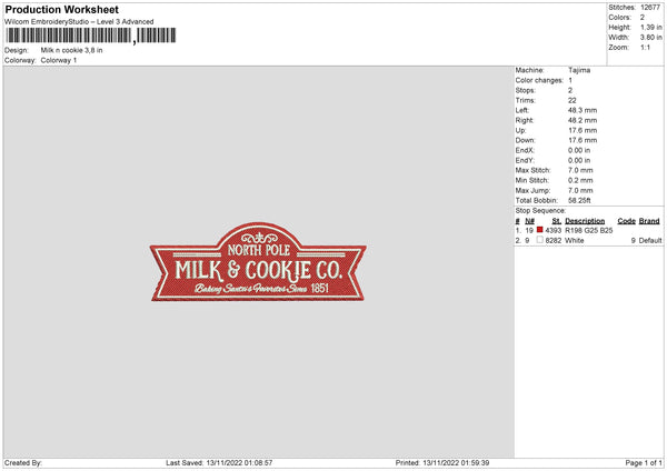 Milk N Cookie Embroidery File 6 sizes