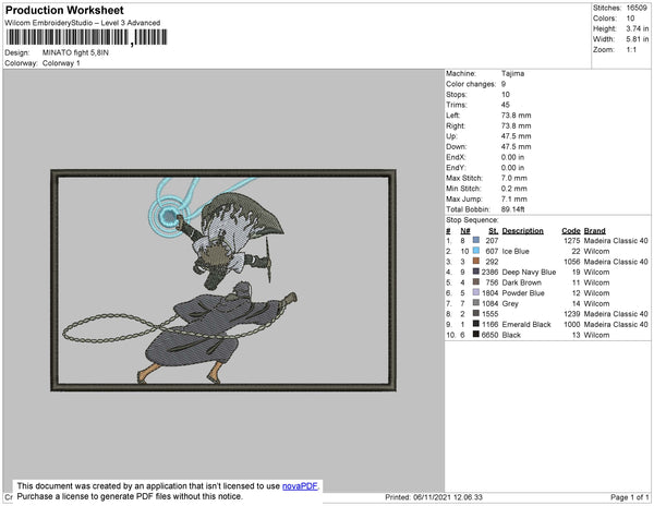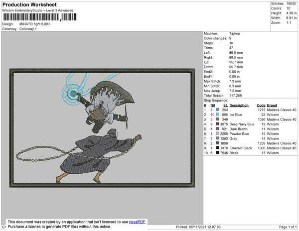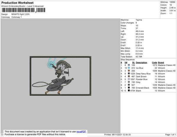 Minato Fight Embroidery File 4 size