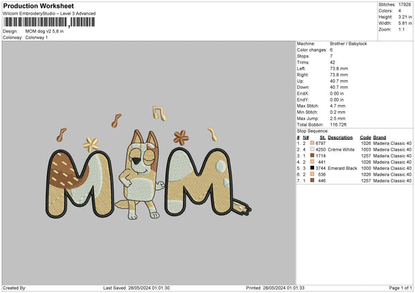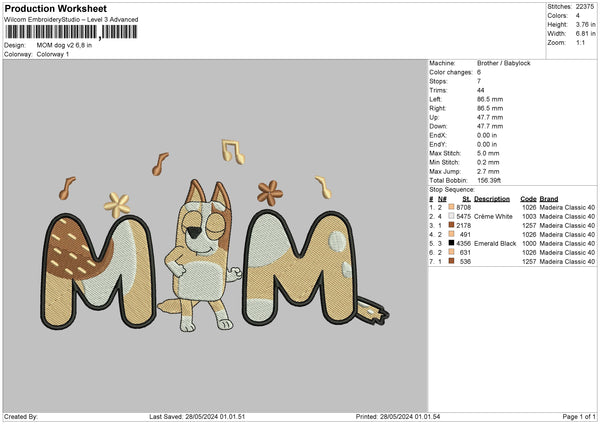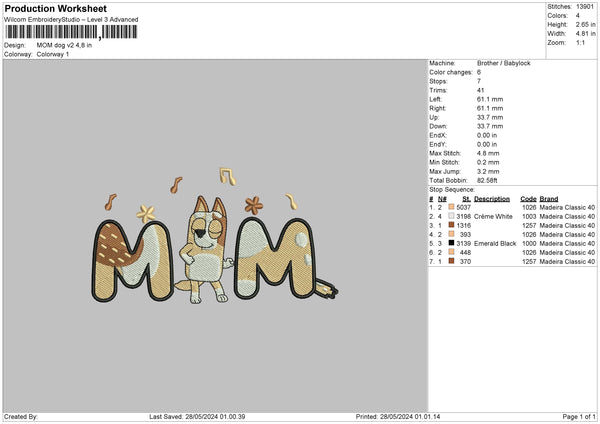 Momdog 2805 Embroidery File 6 sizes