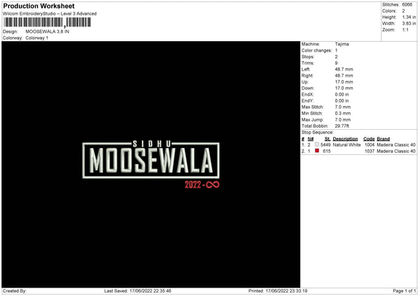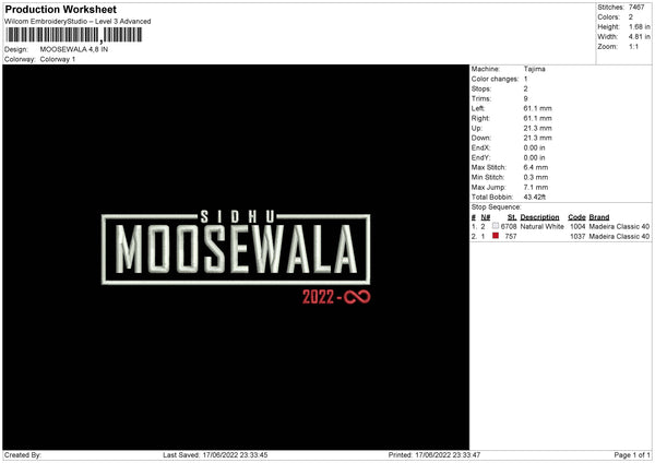 Moosewala 2022 Embroidery File 4 size