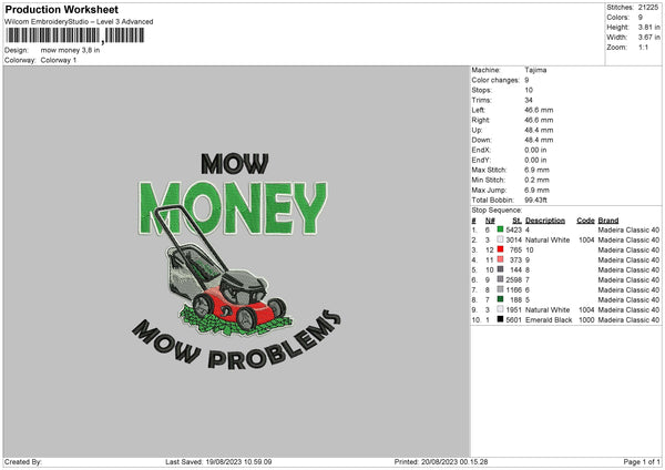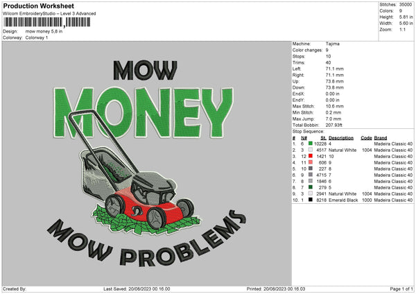 Mow Money Embroidery File 6 sizes