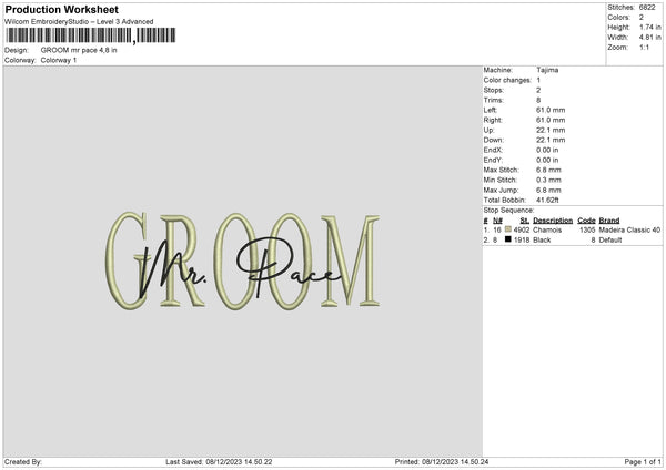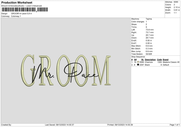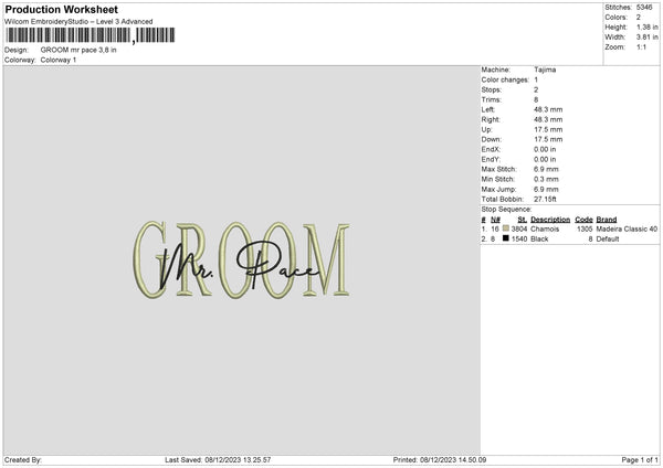 Mr Pace Embroidery File 6 sizes