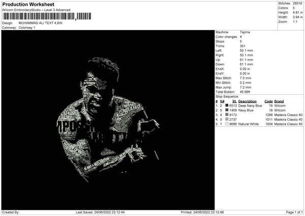 Muhammad Ali Text Embroidery File 4 sizes