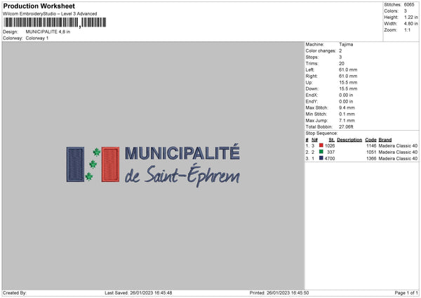 Municipalite Embroidery File 6 sizes