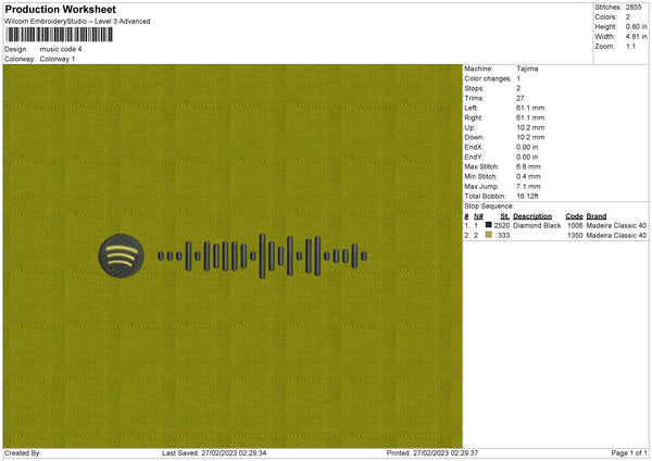 Music Code Embroidery File 6 sizes