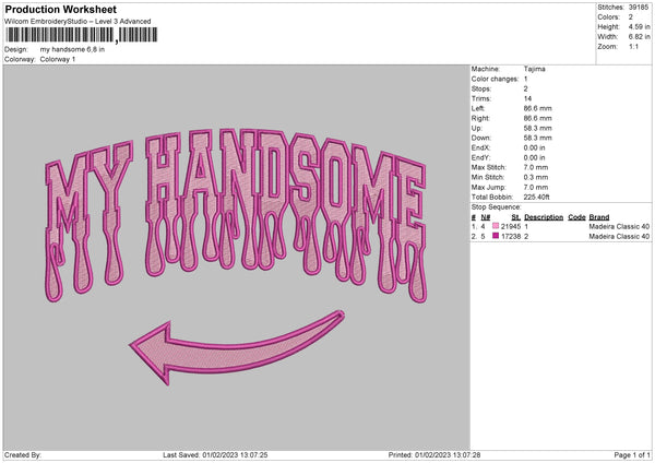 My Handsome Txt Embroidery File 6 sizes