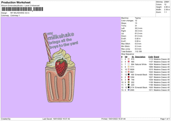 My Milkshake Embroidery File 4 size
