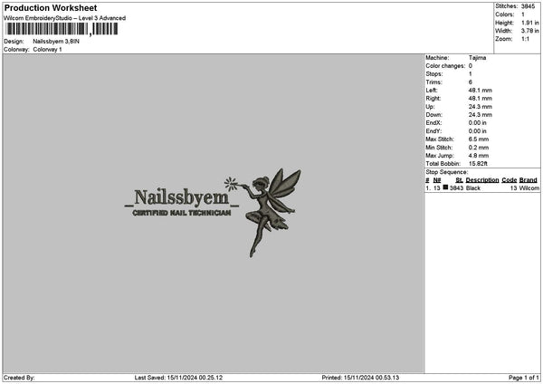 Nailstext 1511 Embroidery File 6 sizes