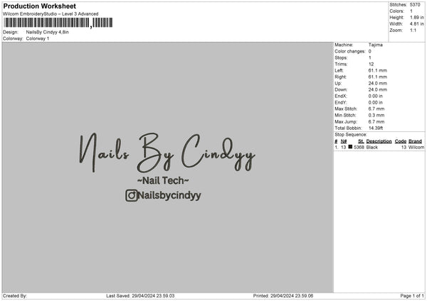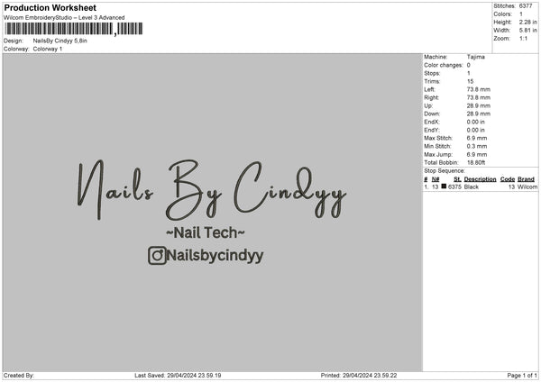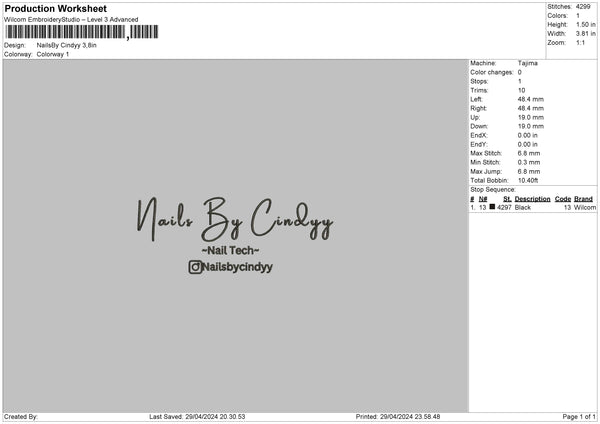 Nailstext 2904 Embroidery File 6 sizes