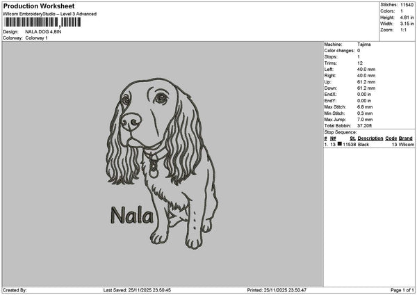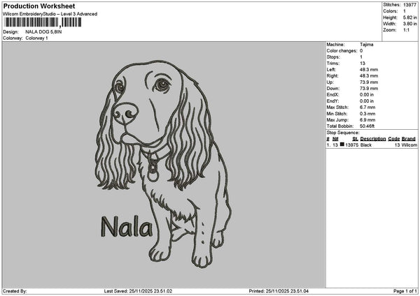 Nala Dog Embroidery File 6 sizes