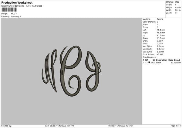 Ncj Embroidery File 6 sizes