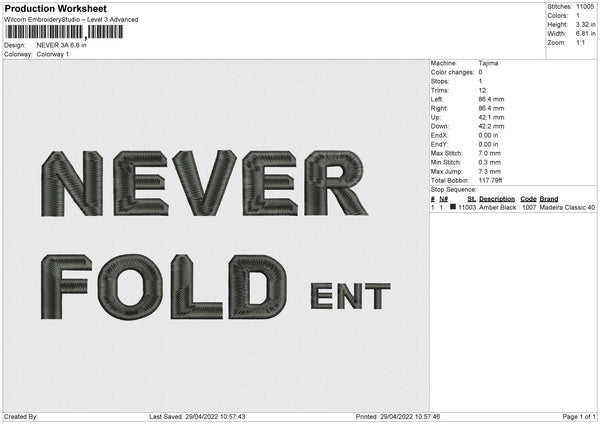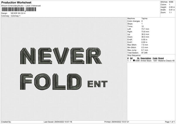 Never 3A Embroidery File 4 size