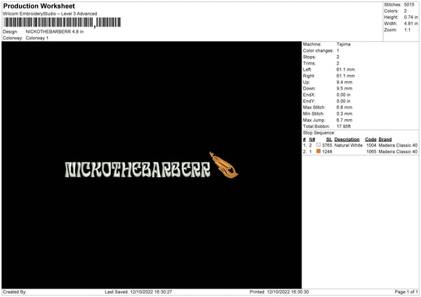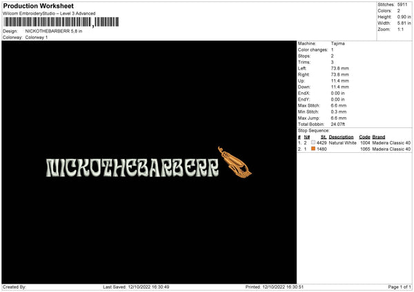 Nickothebarberr Embroidery File 6 sizes