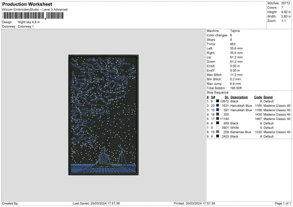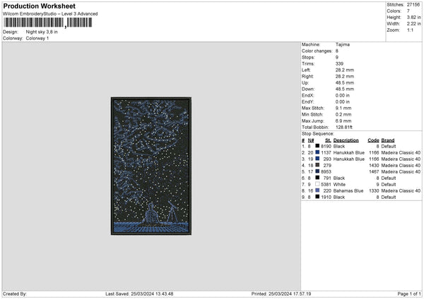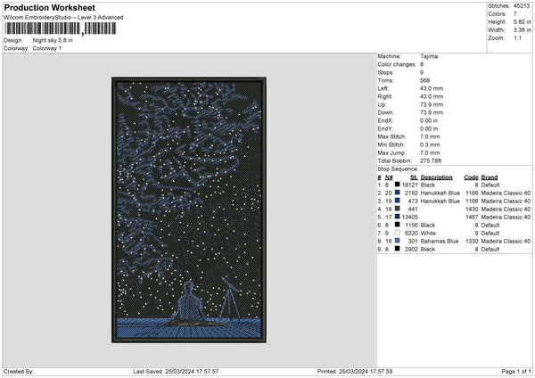 Night Sky Embroidery File 6 sizes