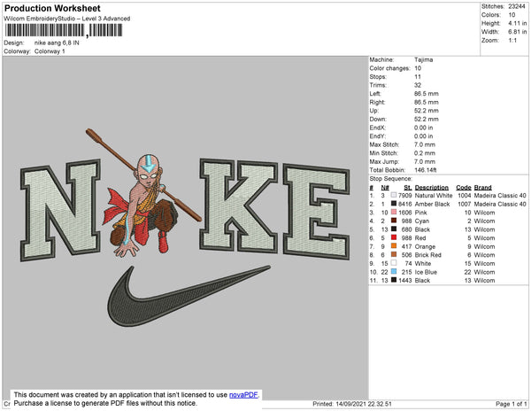 Nike Aang 002 Embroidery File 4 size