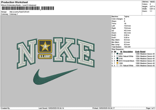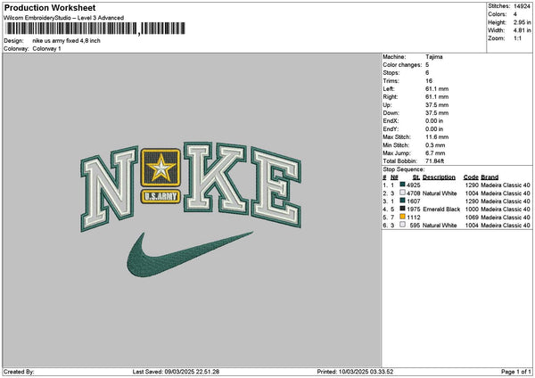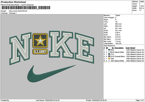 Nike Army Embroidery File 6 sizes