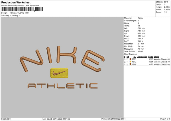 Nike Athelic 02 Embroidery File 6 sizes