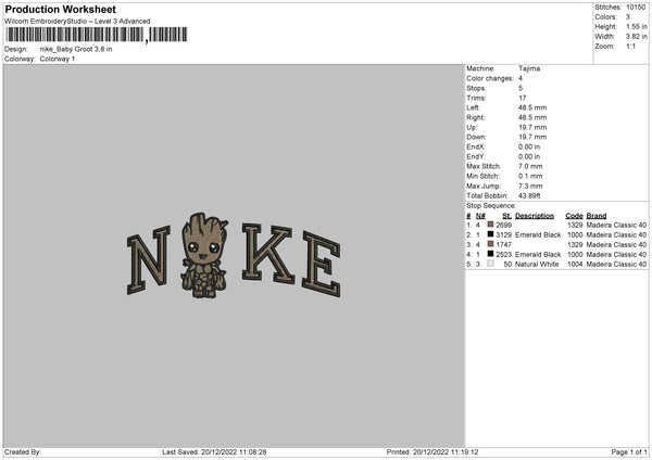 Nike Baby Groot Emboidery File 6 sizes