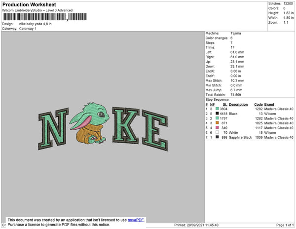 Nike Baby Yoda Embroidery File 4 size
