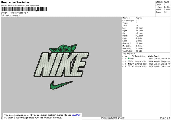 Nike Baby Yoda Embroidery File 4 size