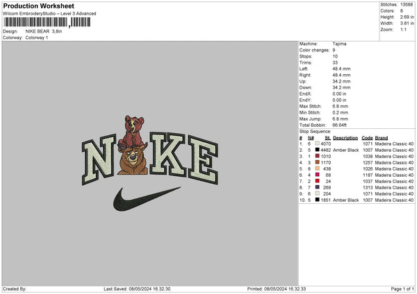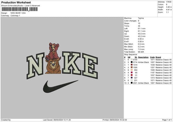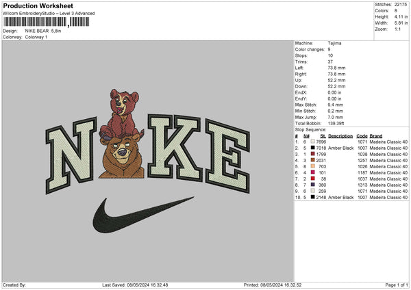 Nike Bear 0805 Embroidery 6 sizes