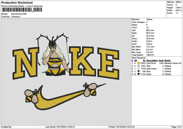 Nike Bee 1012 Embroidery File 6 sizes