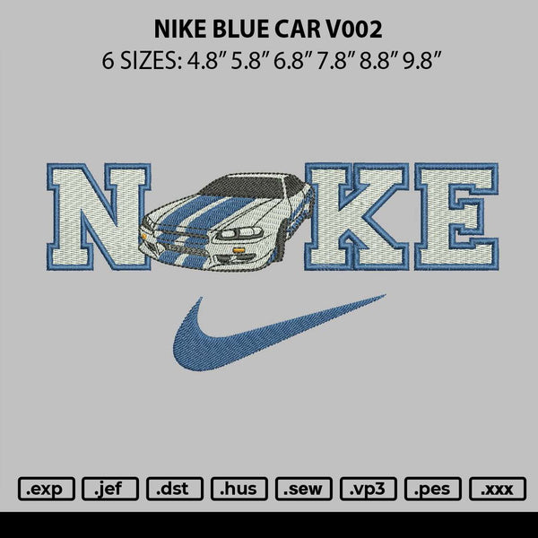 Nike Blue Car V002 Embroidery File 6 Sizes