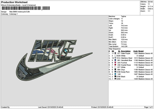 Nike Bmw Motor Embroidery File 6 sizes