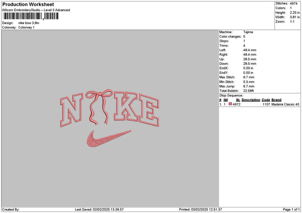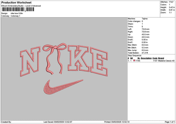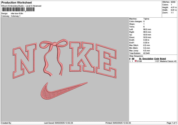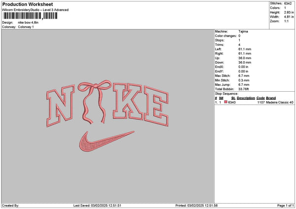 Nike Bow 0302 Embroidery File 6 sizes