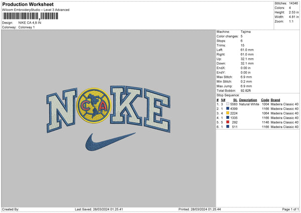 Nike Ca Embroidery File 6 sizes