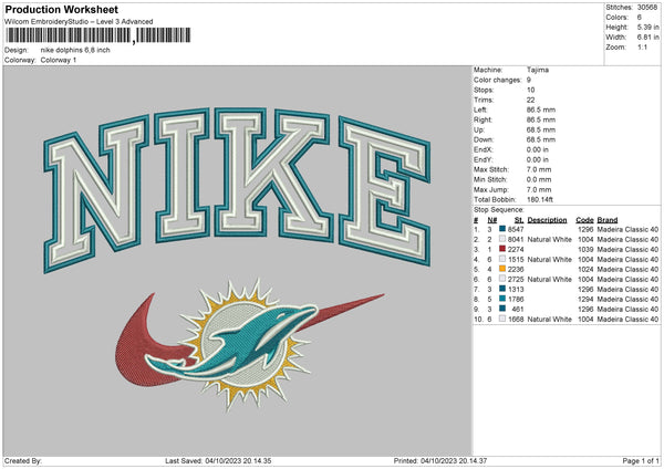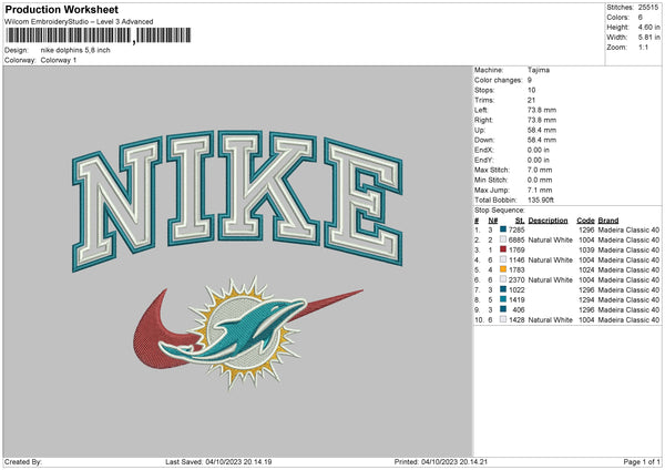 Nike Dolphin Embroidery File 6 sizes