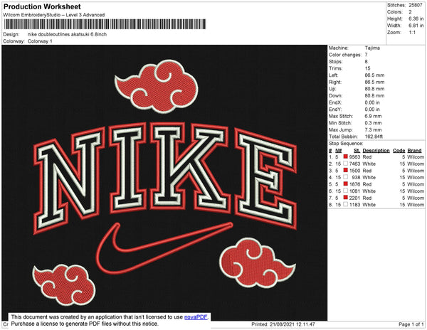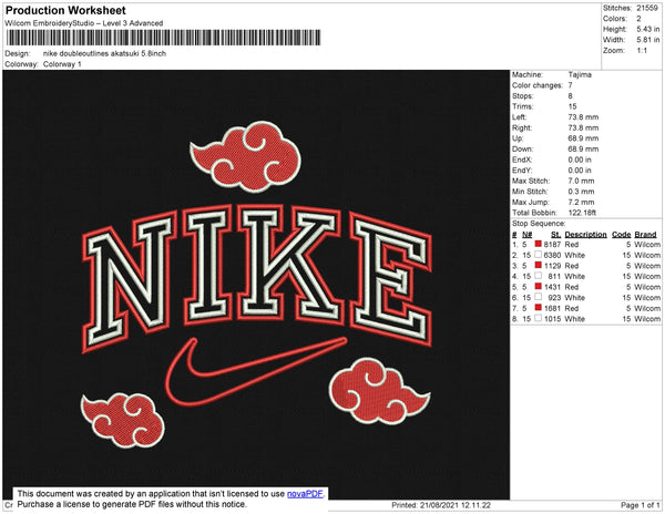 Nike Doubleoutlines Akatsuki Embroidery File 4 size