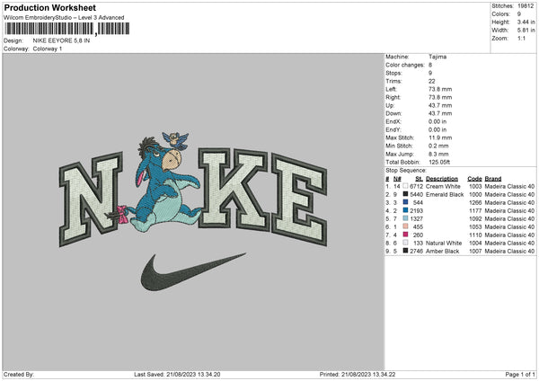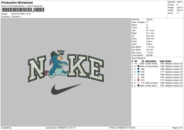 Nike Eeyore 2108 Embroidery File 6 sizes