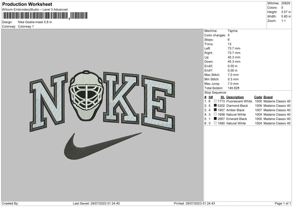 Nike Goalie Mask Embroidery File 6 sizes