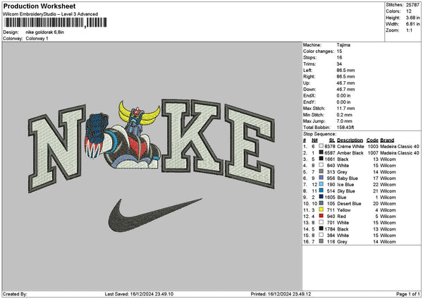 Nike Goldorak Embroidery File 6 sizes