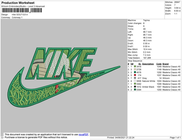 Nike Golf Embroidery File 4 size