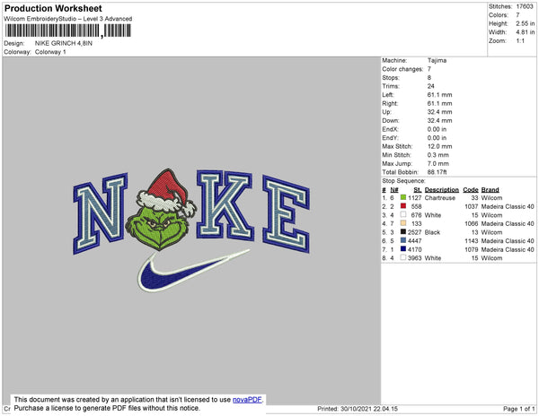 Nike Grinch Embroidery File 4 size