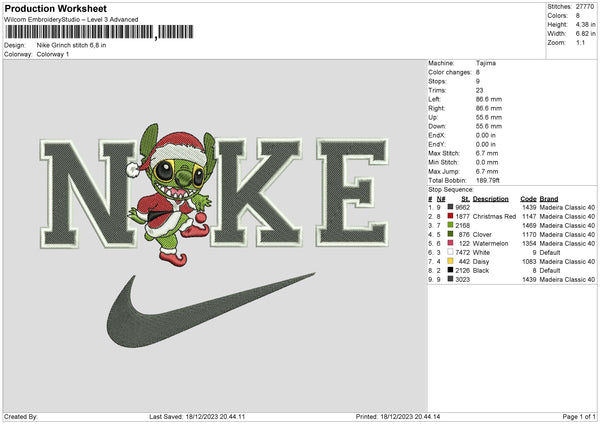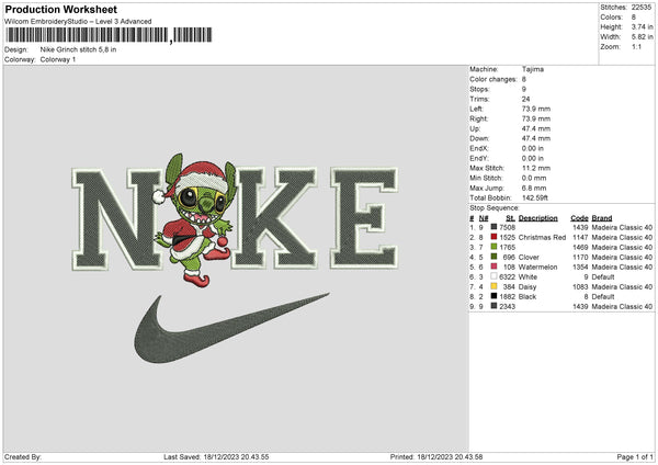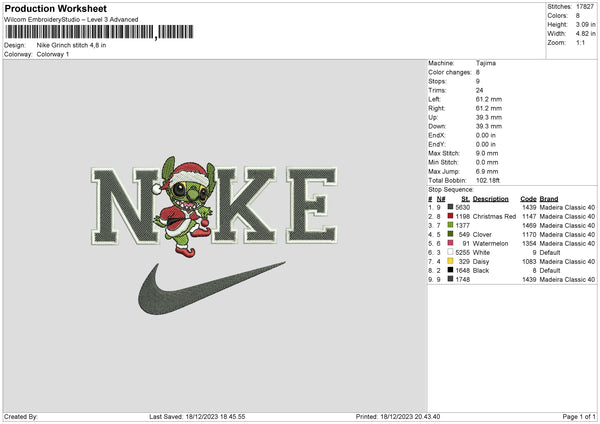 Nike Grinch Stitch Embroidery File 6 sizes\