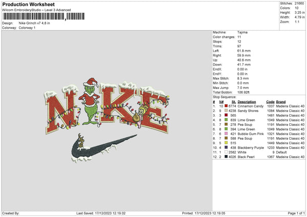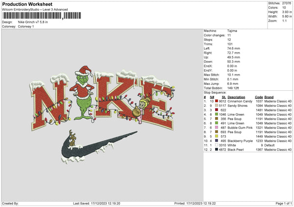 Nike Grinch V07 Embroidery File 6 sizes