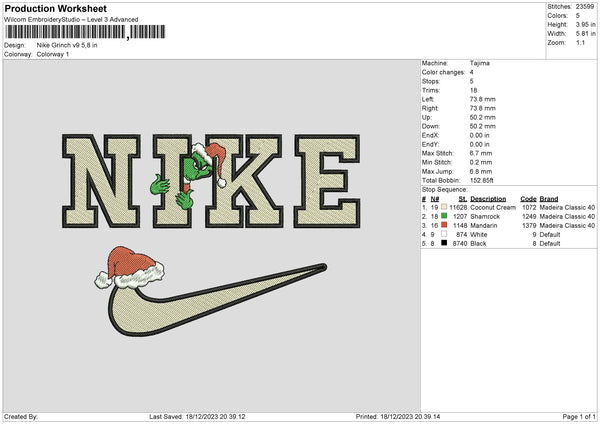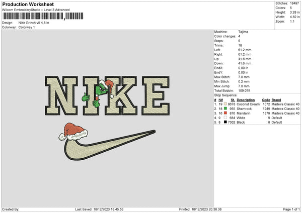 Nike Grinch V9 Embroidery File 6 sizes