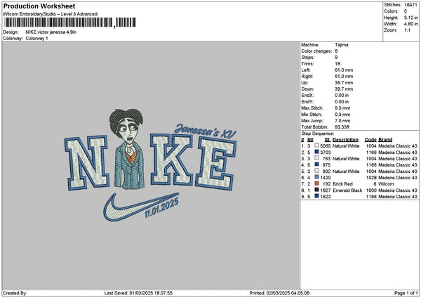 Nike Janessa V3 Embroidery File 6 sizes